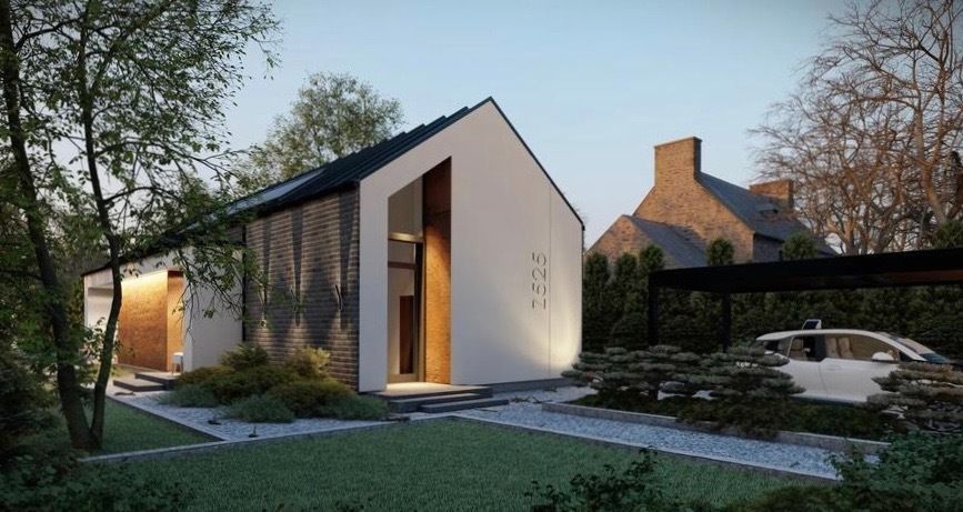 Dom o powierzchni użytkowej ponad 121 m2 mieści w sobie długi hol, prowadzący do przestrzeni dziennej, jaką jest salon połączony z kuchnią. Jest to wspaniałe rozwiązanie, aby spędzić rodzinny czas we wspólnej przestrzeni. Wysoki salon, mający aż 40m2, posiada możliwość wyjścia na taras z dwóch stron budynku. Po drodze do salonu mieszczą się 3 sypialnie, z których jedna posiada własną garderobę. Tuż przy wejściu znajduje się pomieszczenie gospodarcze, które może pełnić funkcje schowka. W pokojach jest możliwość zrobienia antresoli, gdzie można ulokować łózko i szafę. Jest to dodatkowa opcja, którą należy uzgodnić z wykonawcą.